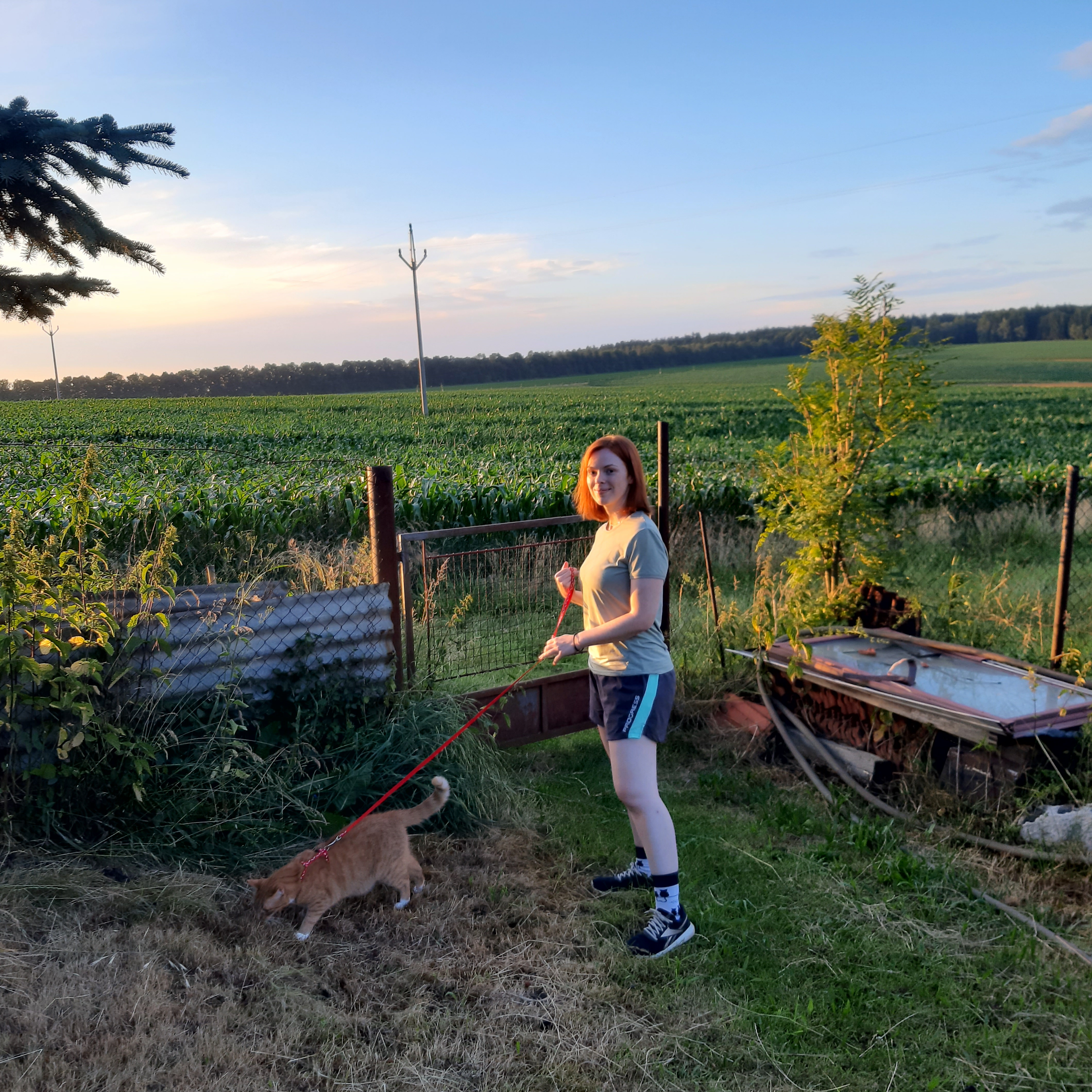 While staying with my partner’s grandparents in the Czech countryside this summer, we would take our two cats for an evening walk through the back garden so they could stretch their legs and chase moths. It was a gorgeous location with glowing sunsets, a thick cornfield outside the fence, and spruce and pine painting the hillocks a deep viridian.